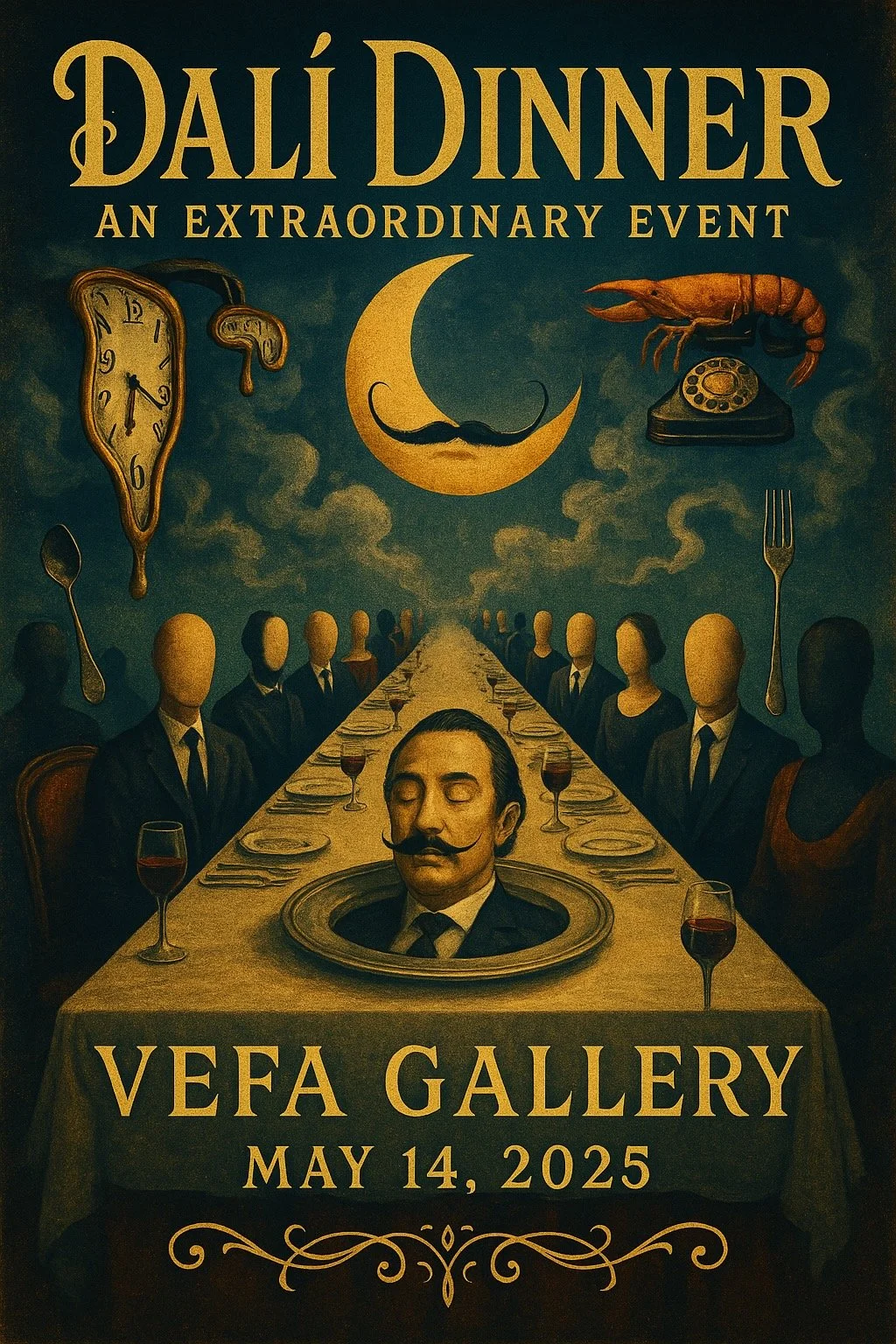An evening gala event comprised of a cocktail and hors d’œuvres reception, followed by a five-course dinner; all foods taken from or inspired by Salvador Dalì's cookbook, Les Diners de Gala coupled with a presentation on Edible Art in the 20th Century (with emphasis on the Surrealist movement and Dalì himself).